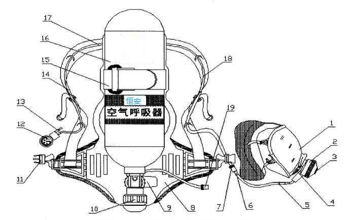 1、面罩:为大视野面窗,面窗镜片地采用是聚碳酸酯材料,具有透明度高、耐磨性强、具有防雾功能,网状头罩式佩戴的方式,佩戴舒适、方便,胶体采用硅胶,无毒、无味、无剌激,气密性能好。